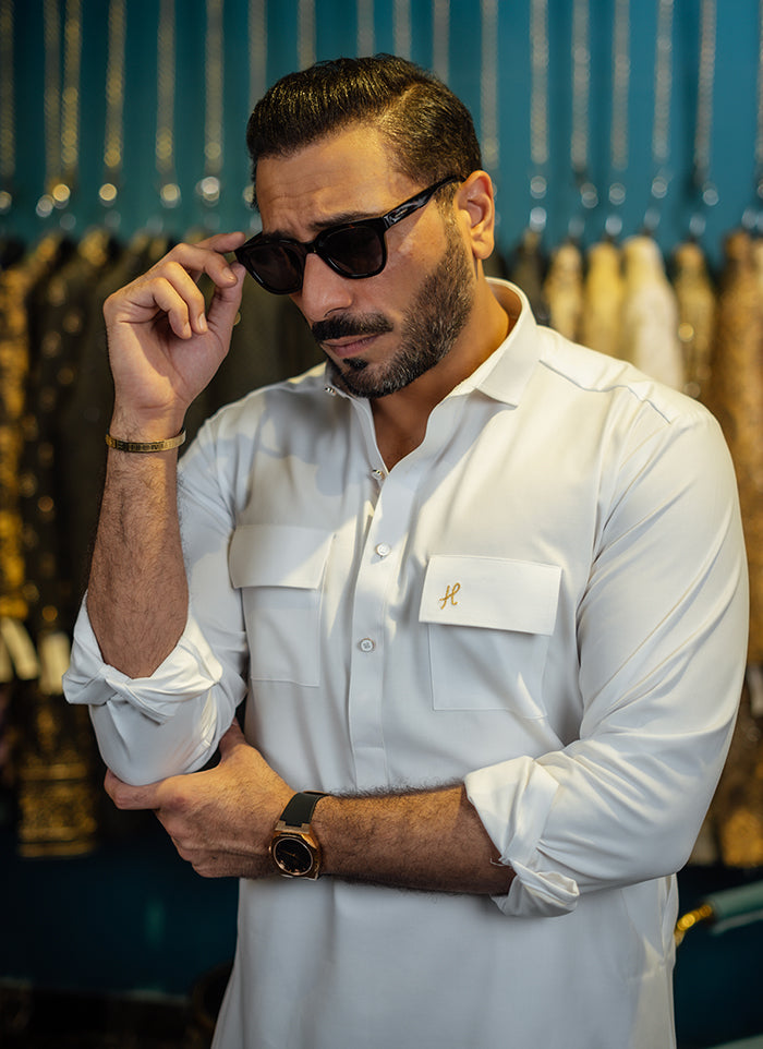 WHITE EGYPTIAN COTTON FARSHI KURTA SHALWAR