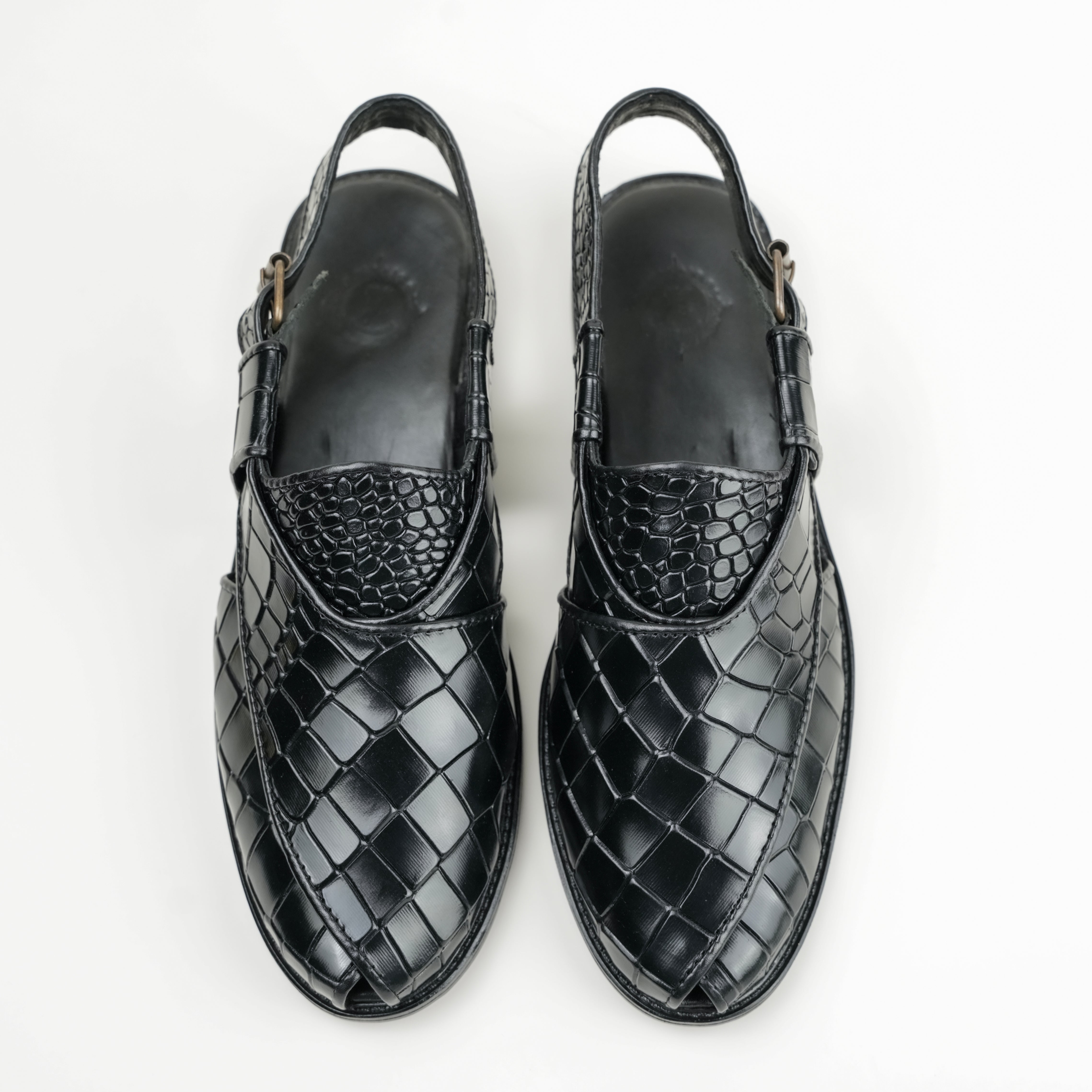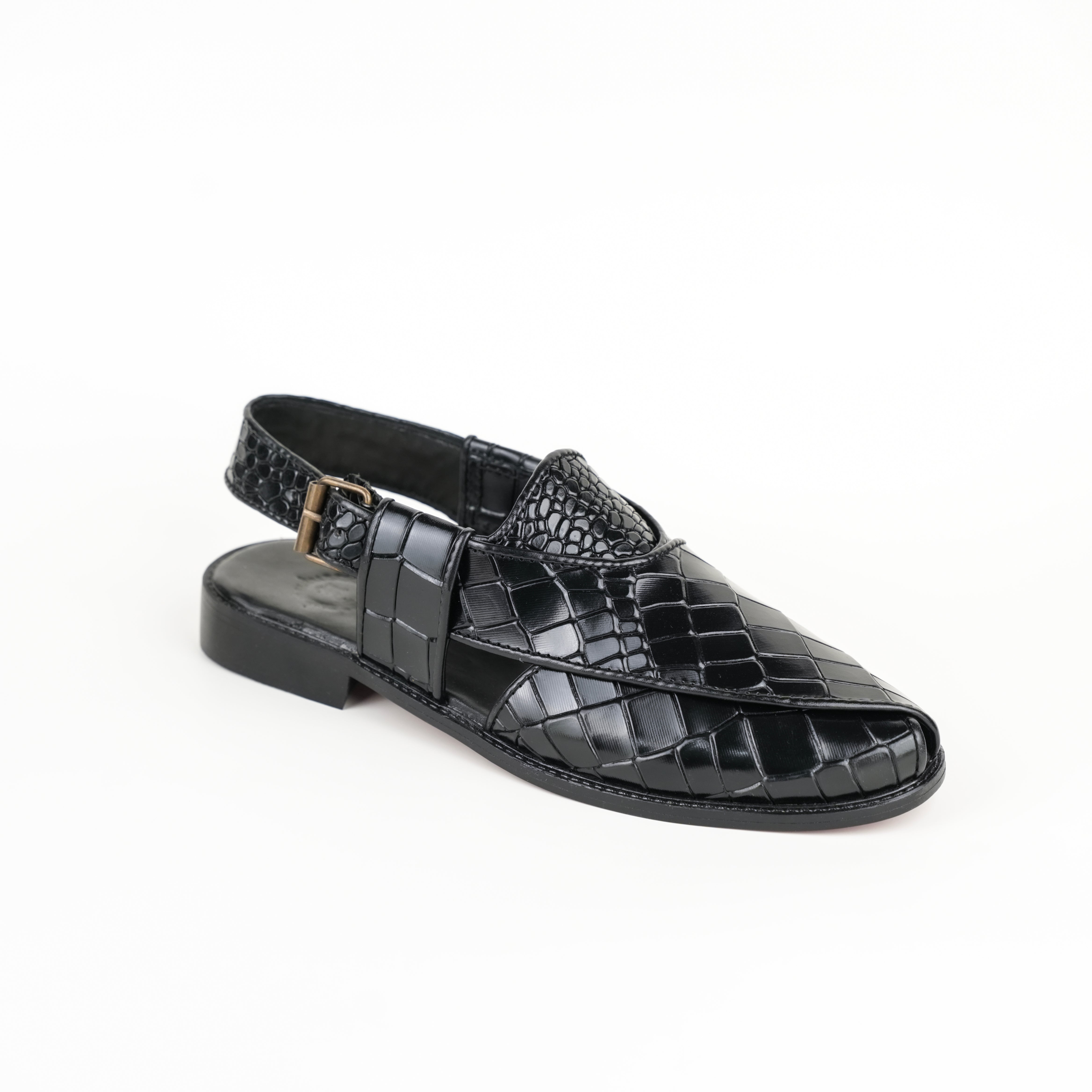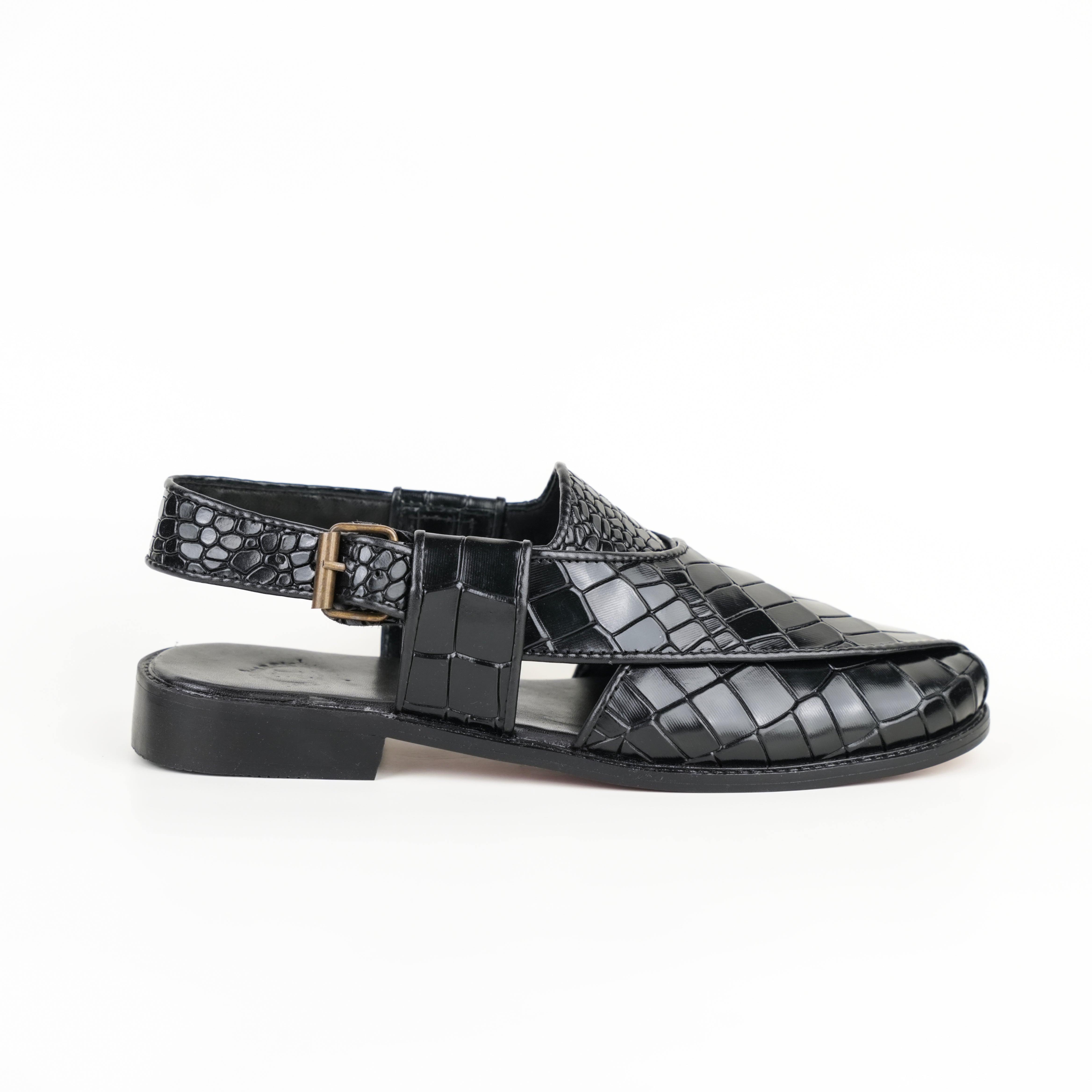 BLACK CROCODILE LEATHER PESHAWARI SANDAL