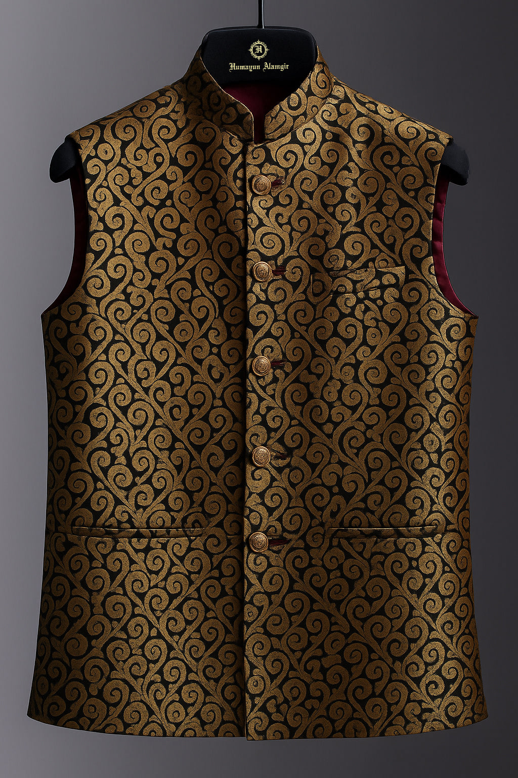 BLACK & GOLD JAMAWAR WAISTCAOT