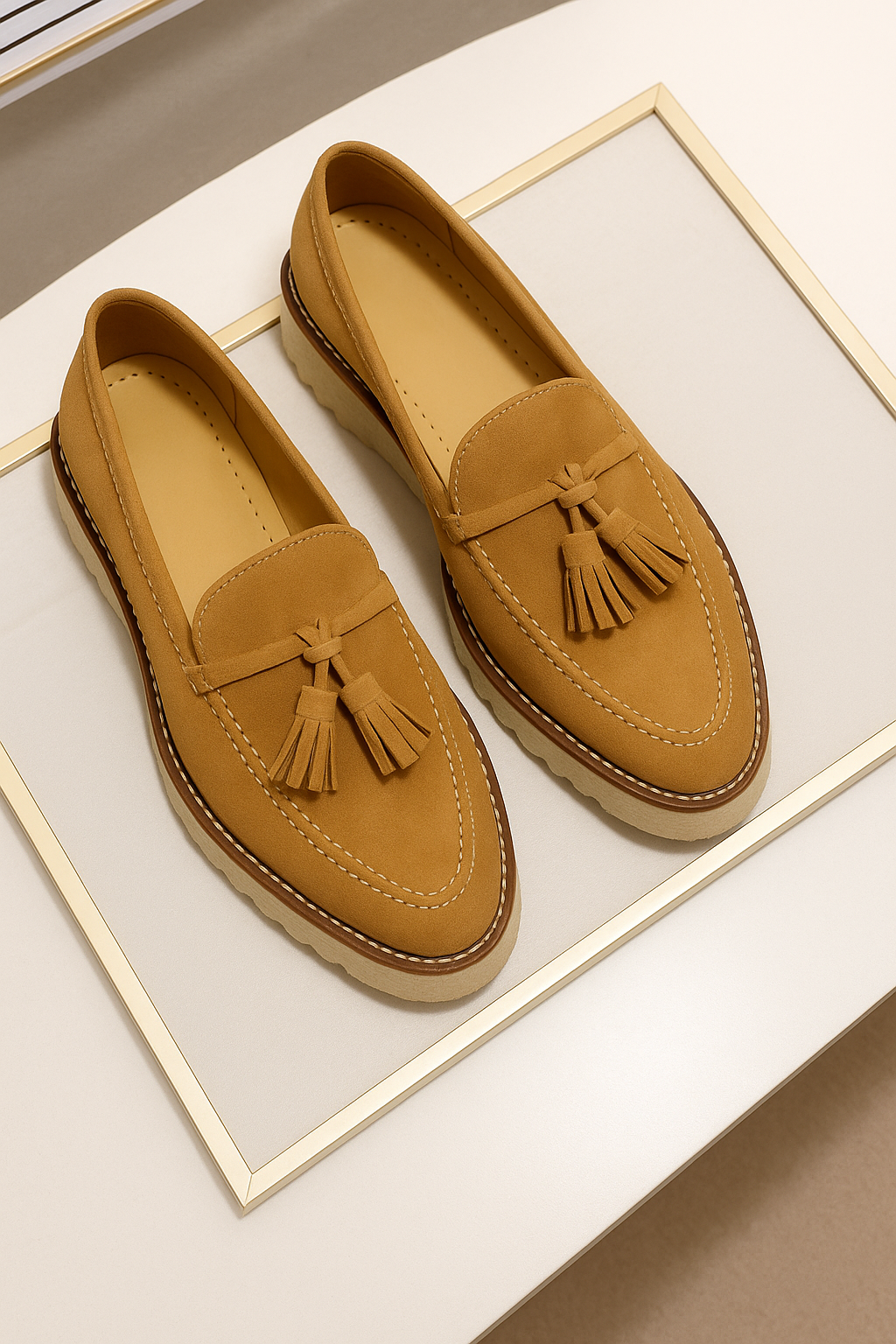 CAMBRIDGE TAN SUEDE TASSEL LOAFERS