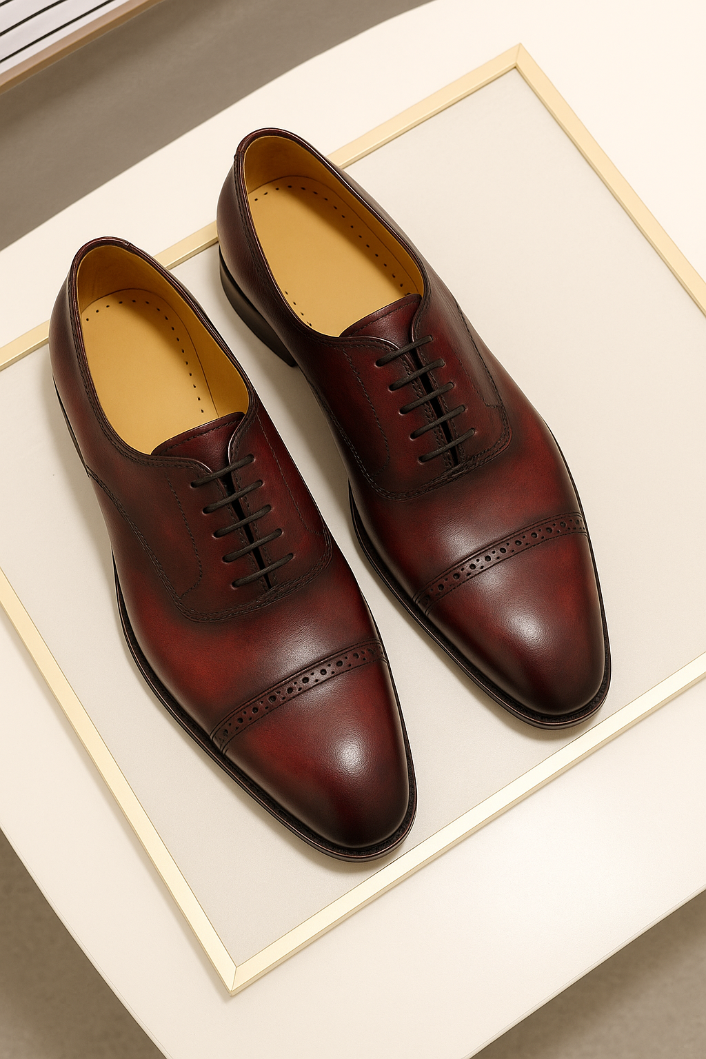 OXBLOOD BROGUE CAP-TOE OXFORD SHOES