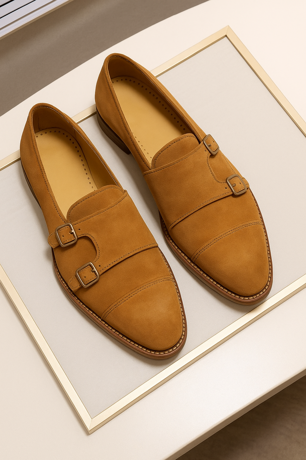 TAN SUEDE DOUBLE MONK STRAP LOAFERS