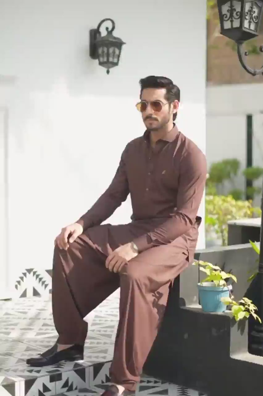 BROWN TEXTURE WASH N WEAR SHALWAR KAMEEZ