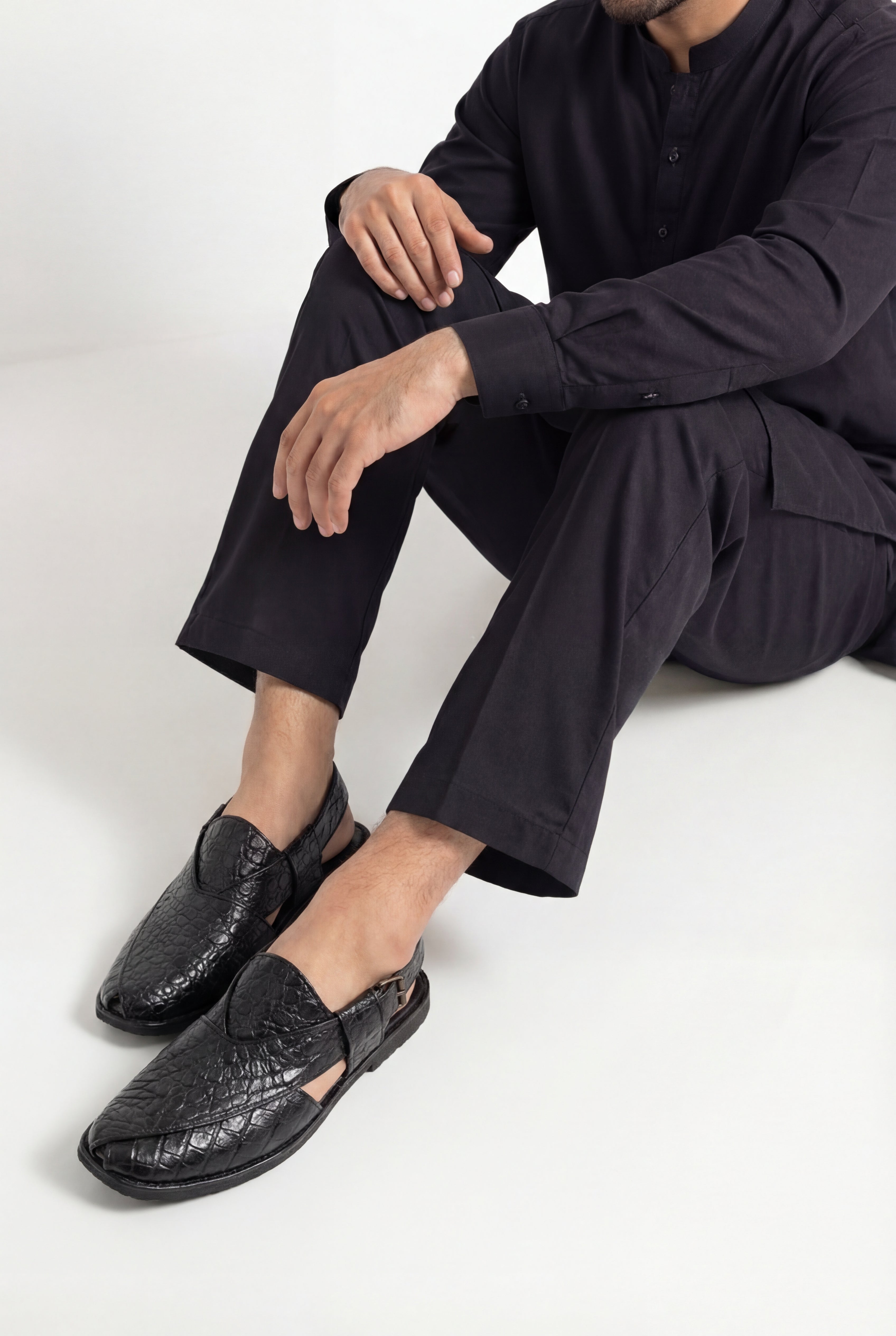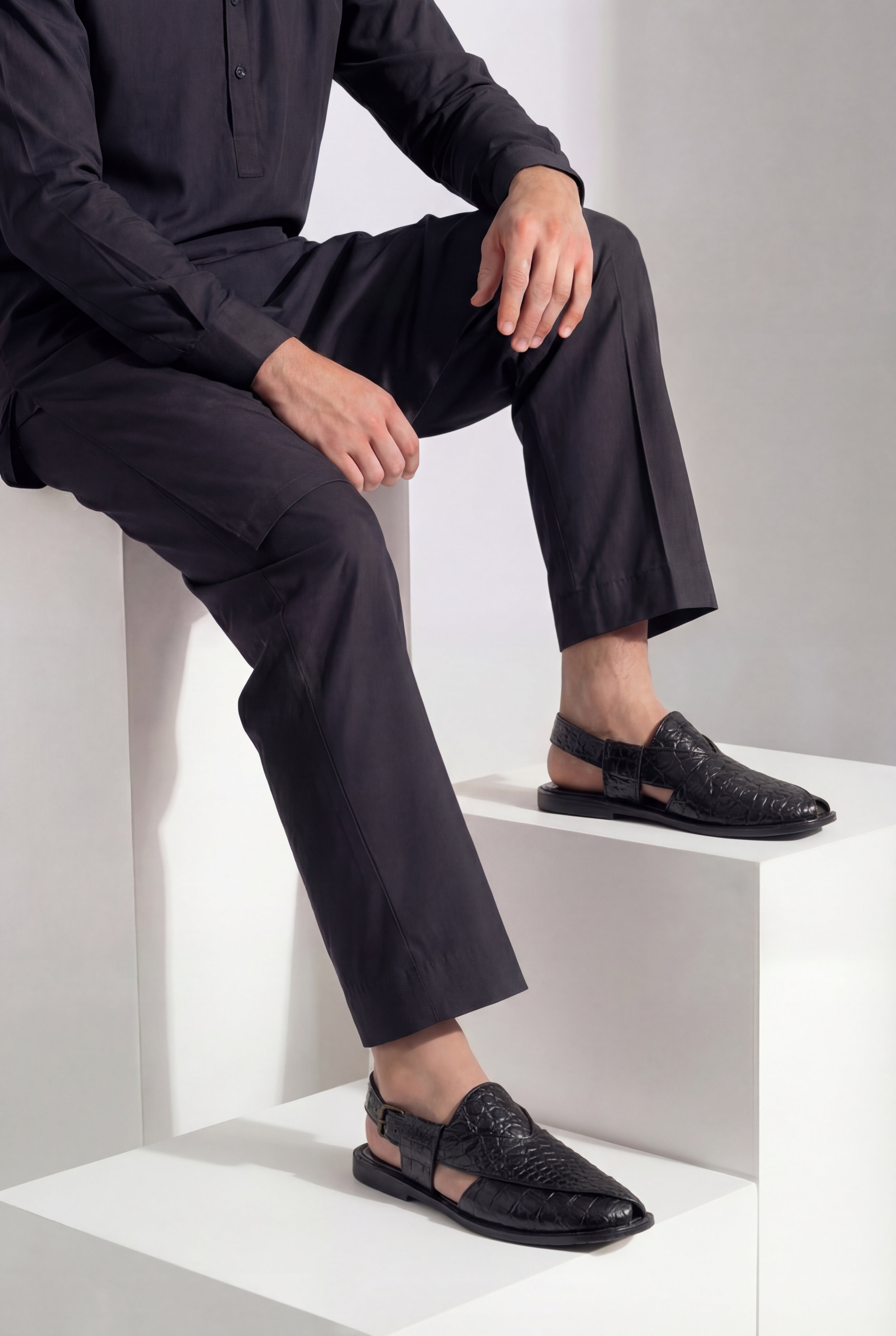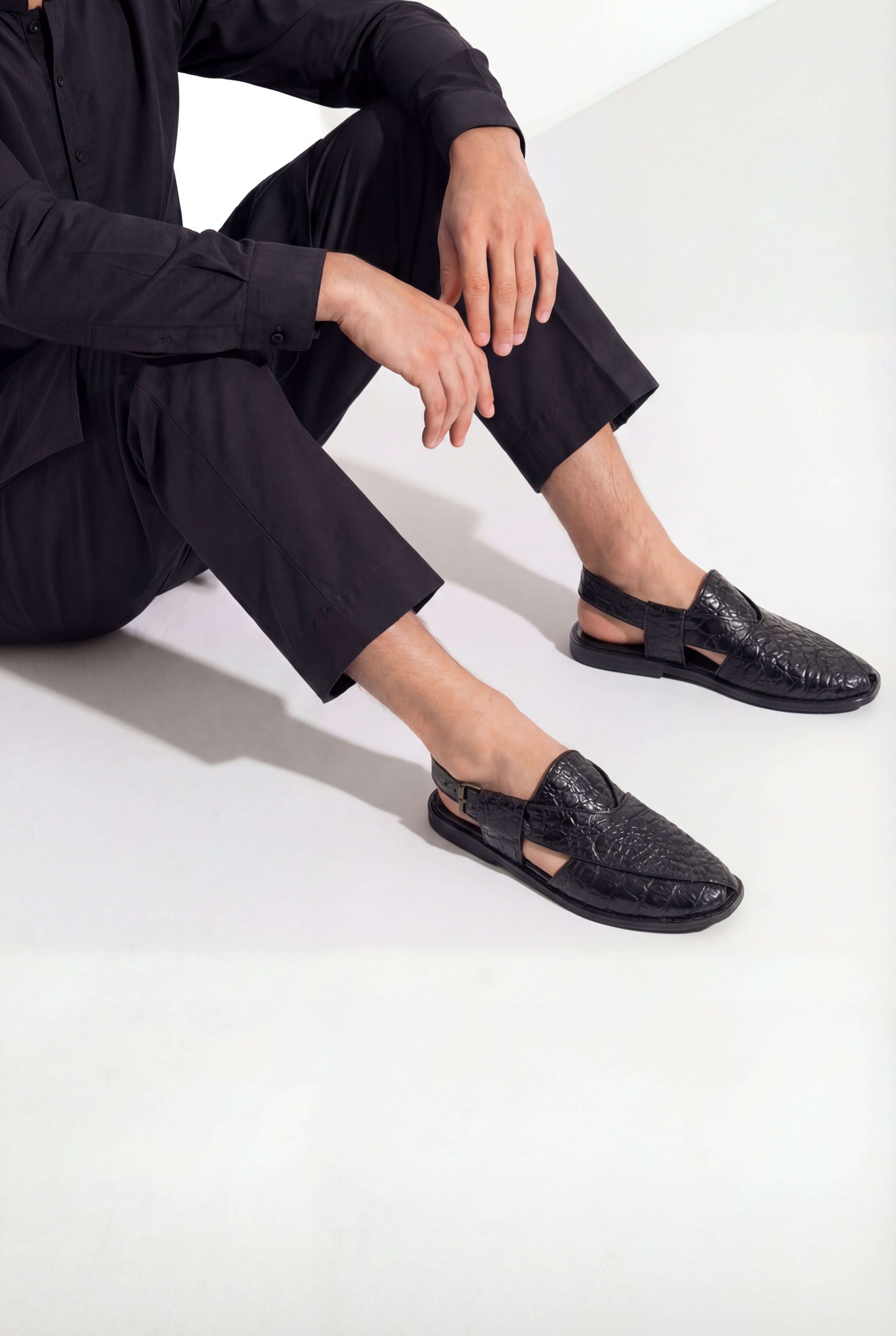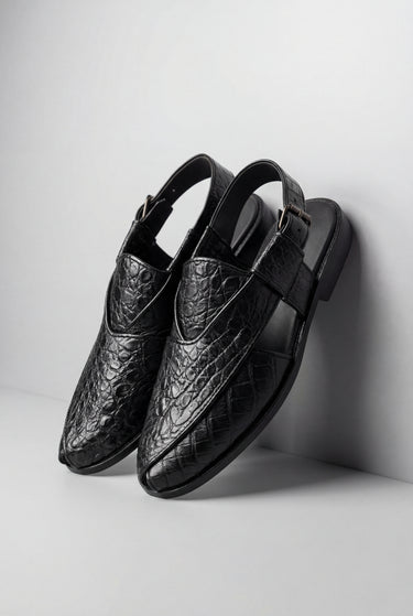 Premium Black Texture Peshawari Sandal, designed for men who appreciate sophistication and tradition combined. Featuring a luxurious crocodile-textured finish, this sandal adds a modern edge to a timeless classic.