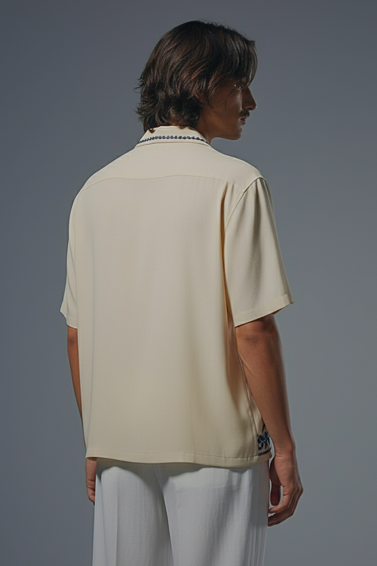 Cream Floral Embroidered Shirt