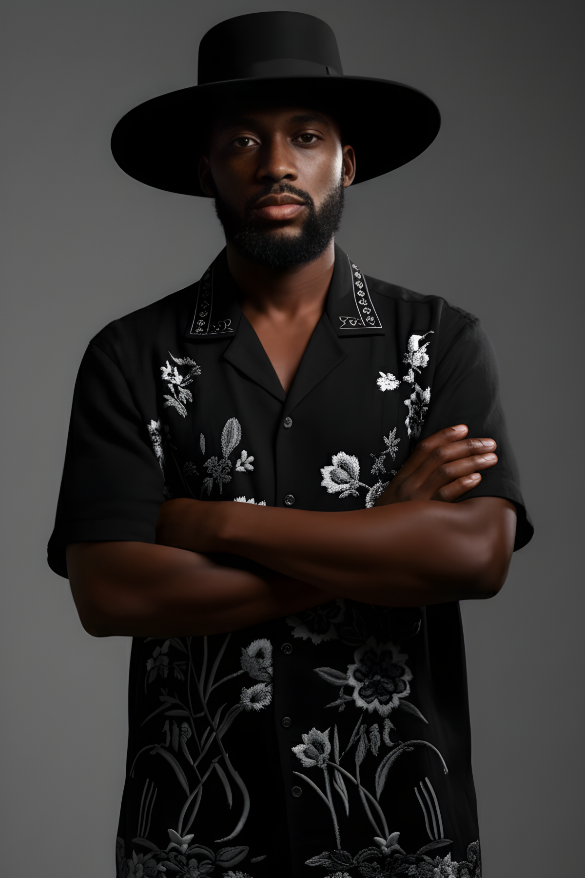 Premium black linen shirt, designed for effortless style and comfort. Crafted from lightweight and breathable linen fabric, this shirt keeps you cool while maintaining a refined look. The highlight is the intricate white floral embroidery across the front, adding a bold and artistic touch to the classic black base.