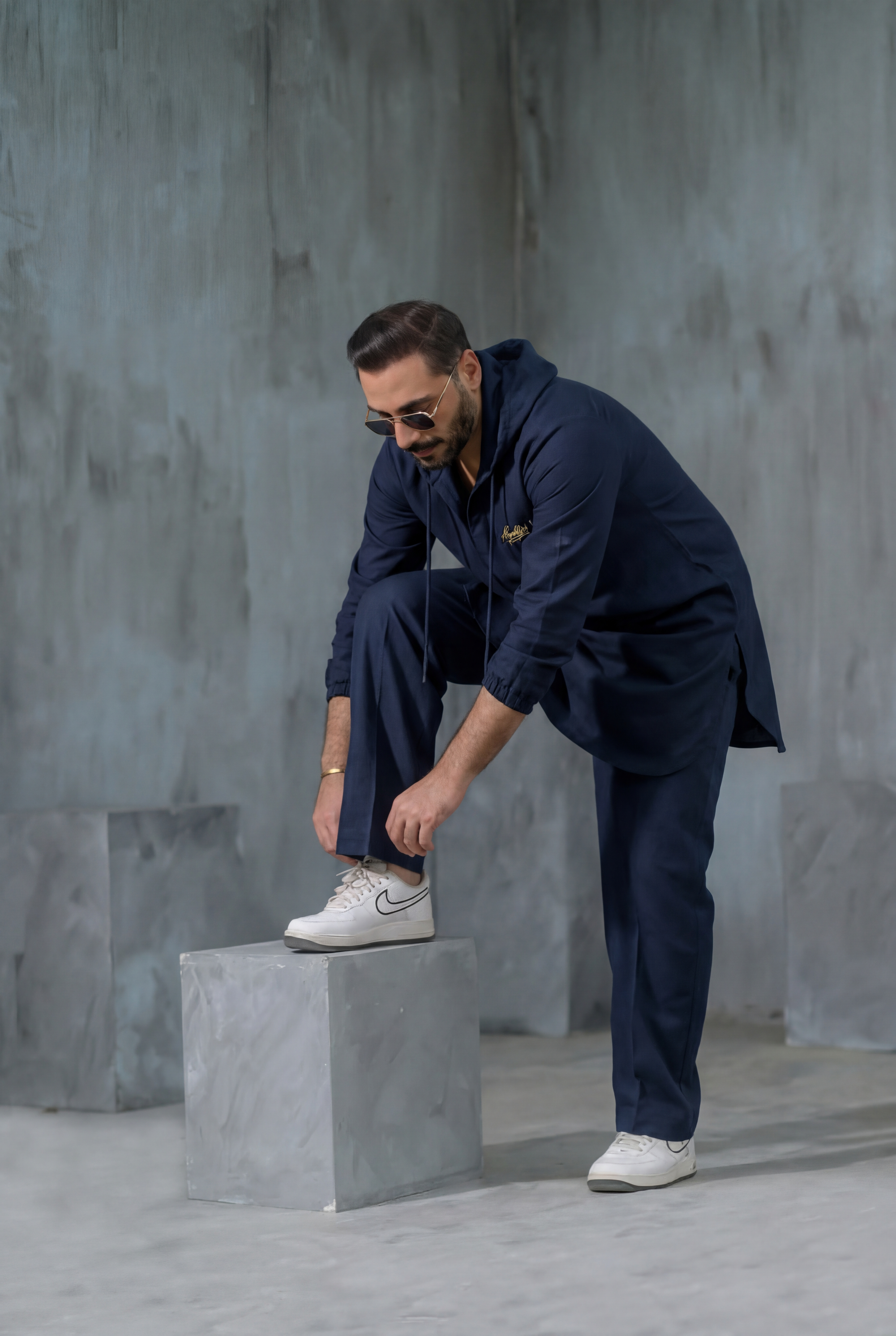The kurta features a contemporary hooded silhouette with a clean buttoned placket, adding a modern edge to a classic profile. Its tailored yet easy fit ensures comfort without compromising on sophistication. The pajama is designed for balance and ease of movement, completing the look with a polished, coordinated finish.