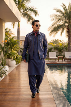 Space Blue Linen Shalwar Kameez Clothing Humayunalamgir