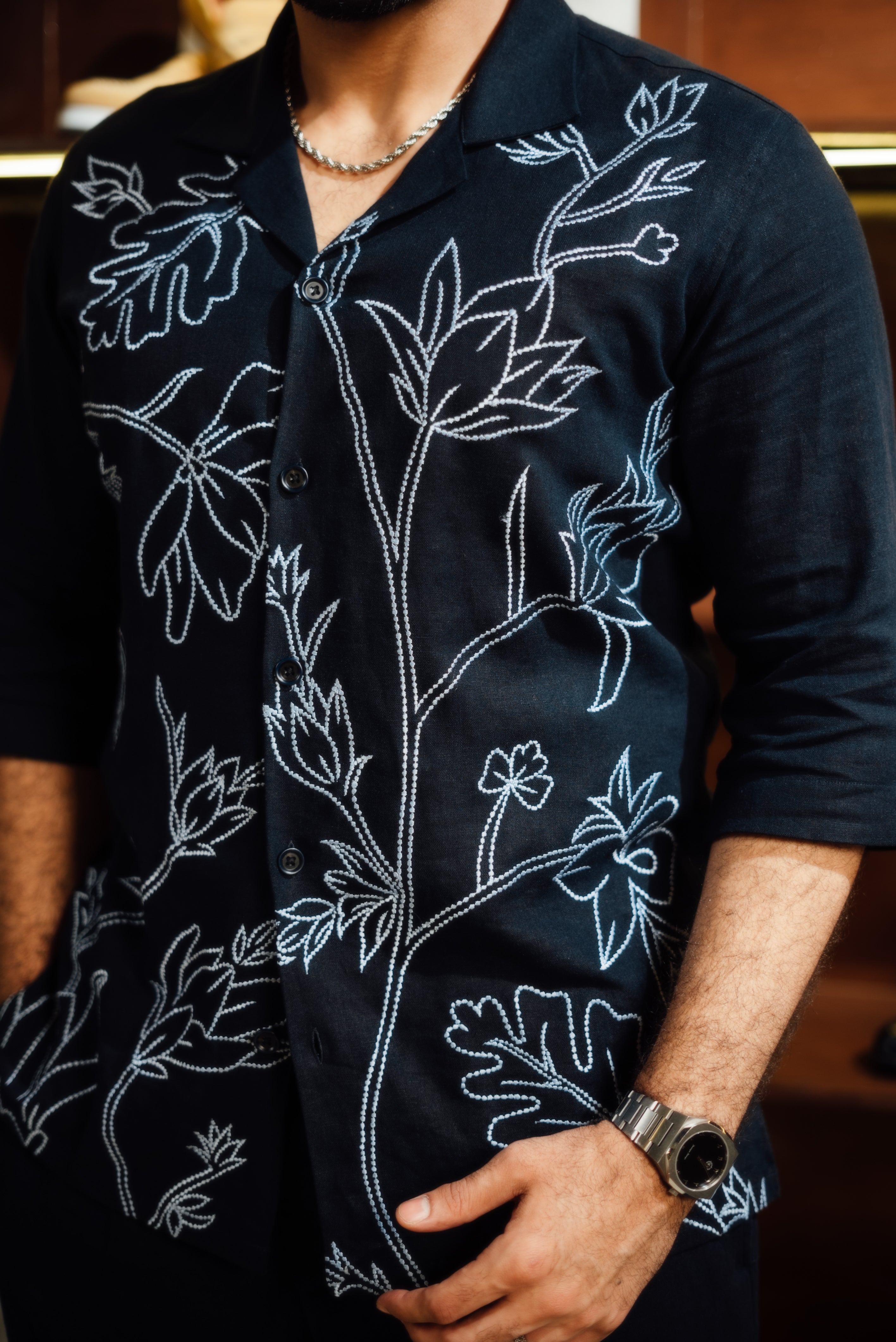 NAVY BLUE FLORAL OUTLINE SHIRT