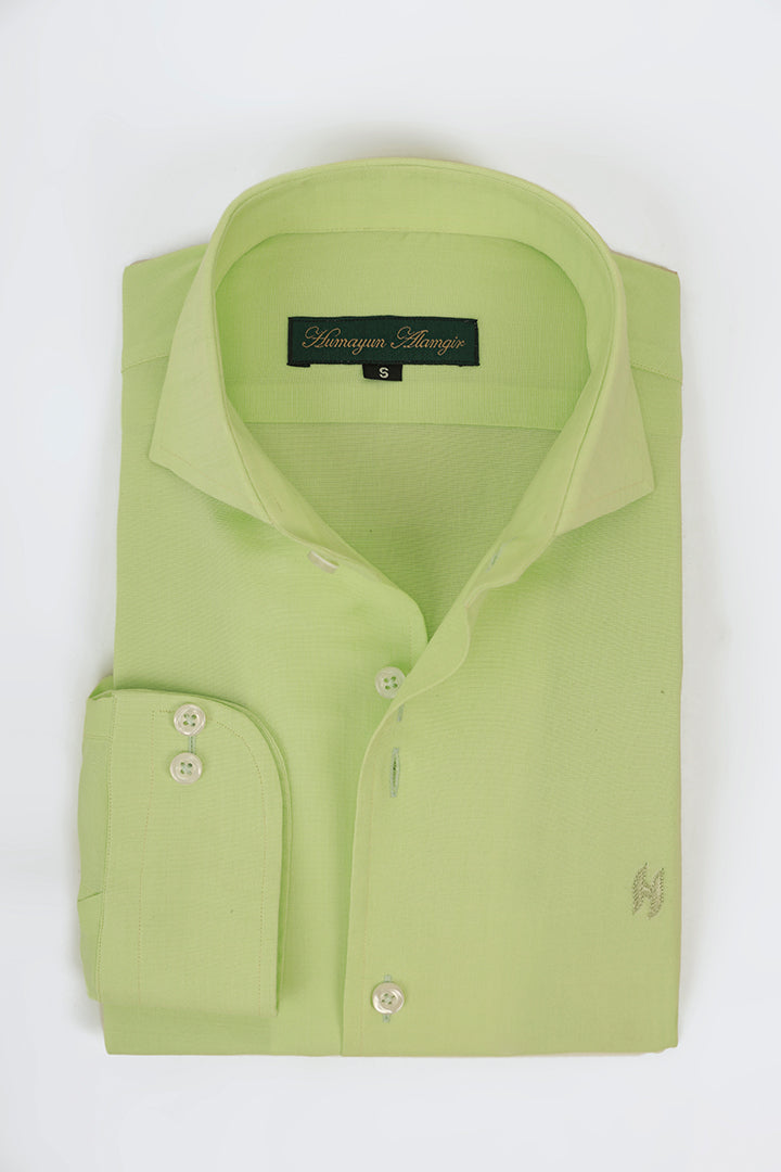 - Expertly crafted, our pistachio green Linen Shirt features a cutaway collar and our signature H logo.