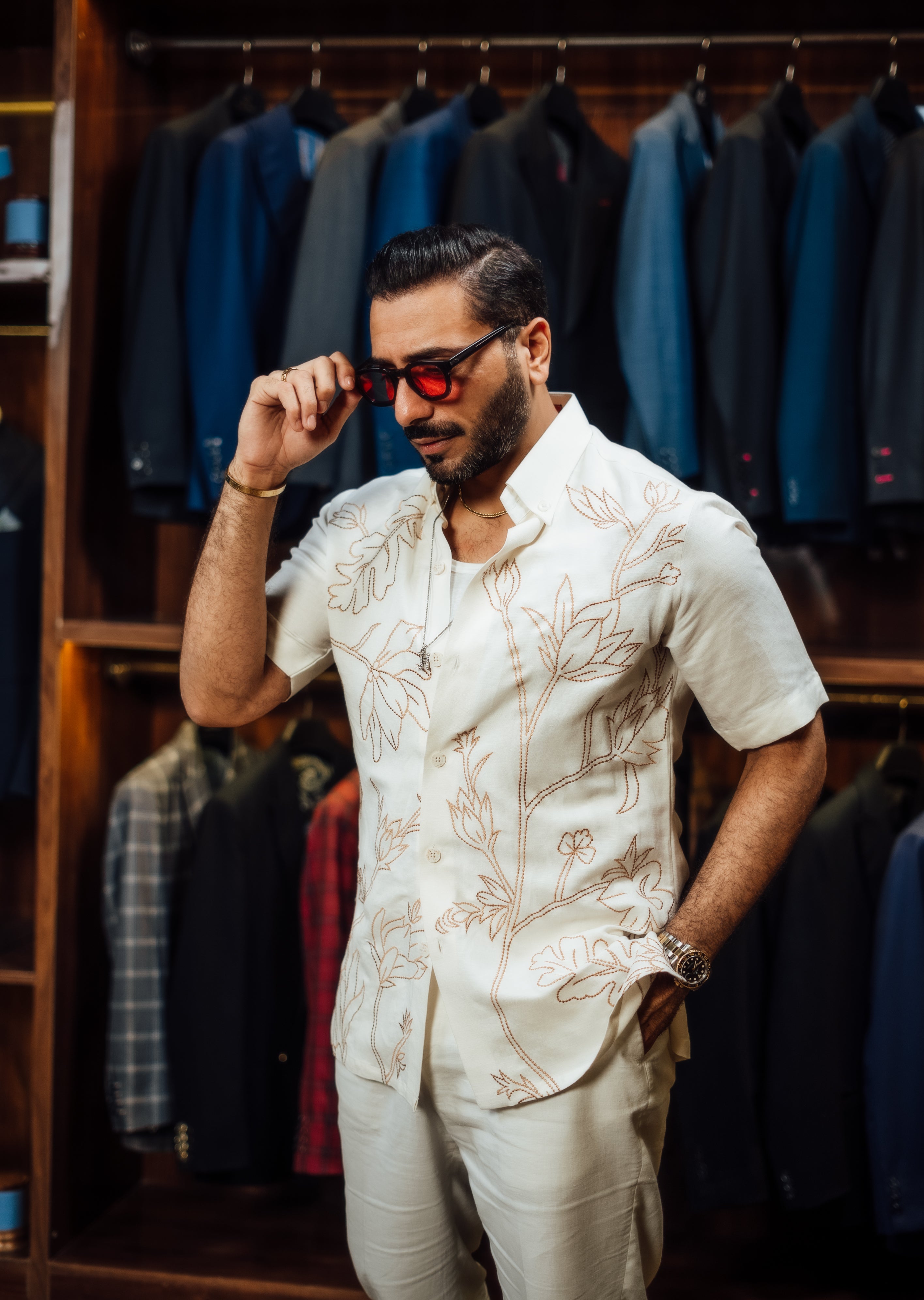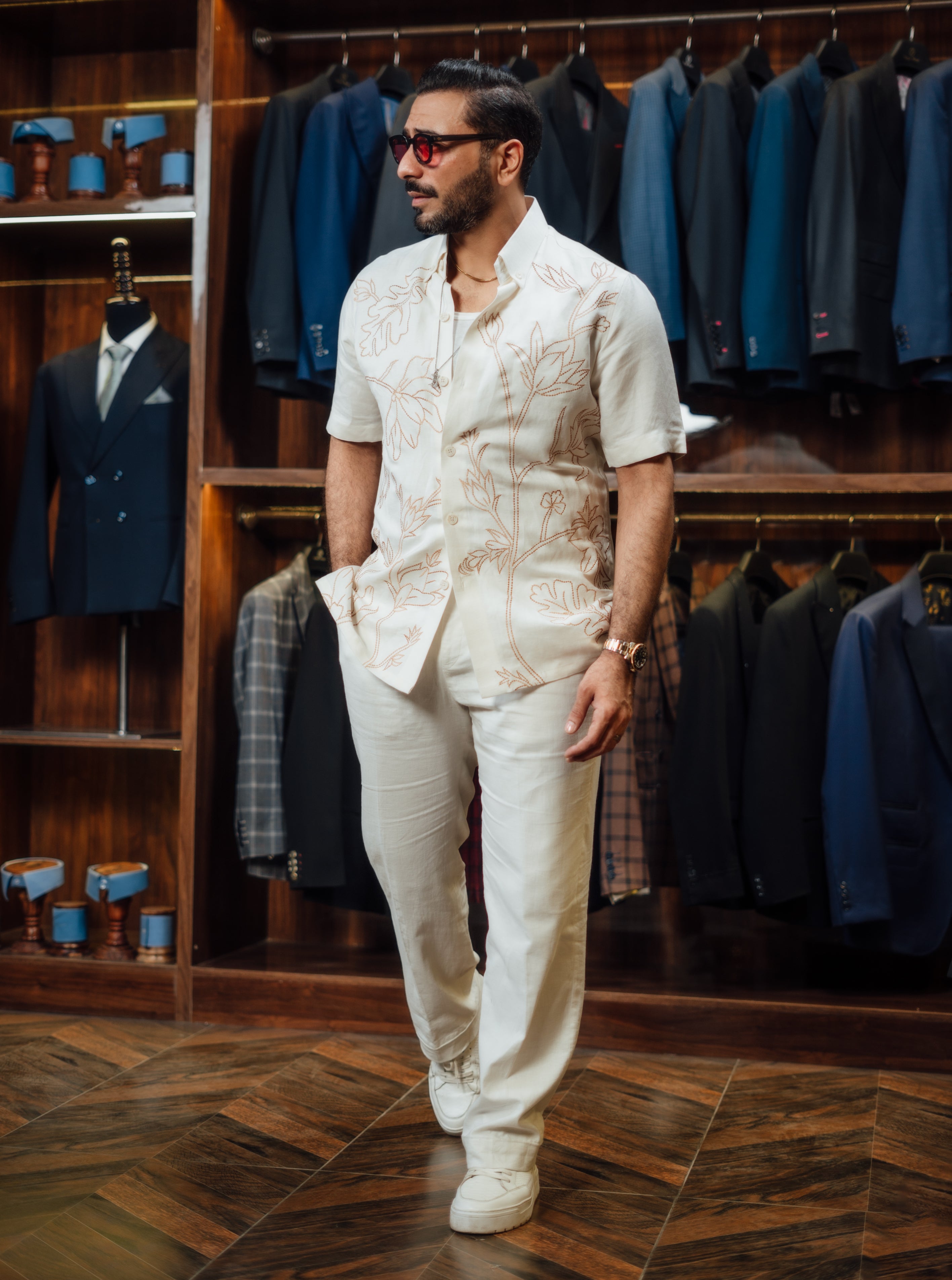 WHITE FLORAL EMBROIDERED SHIRT