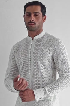 WHITE EMBROIDERED KURTA PAJAMA Humayunalamgir