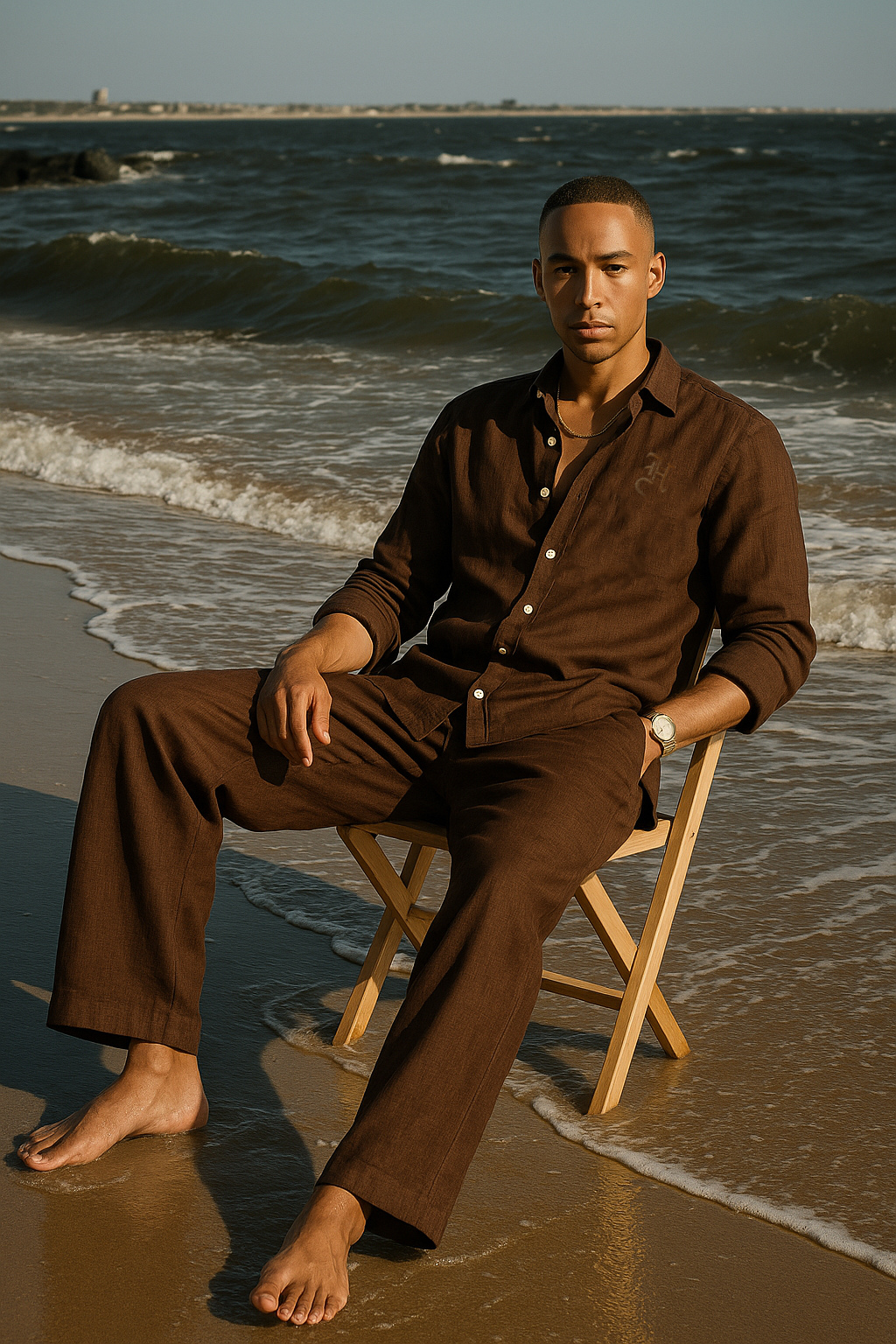 BROWN LINEN CO-RD SET