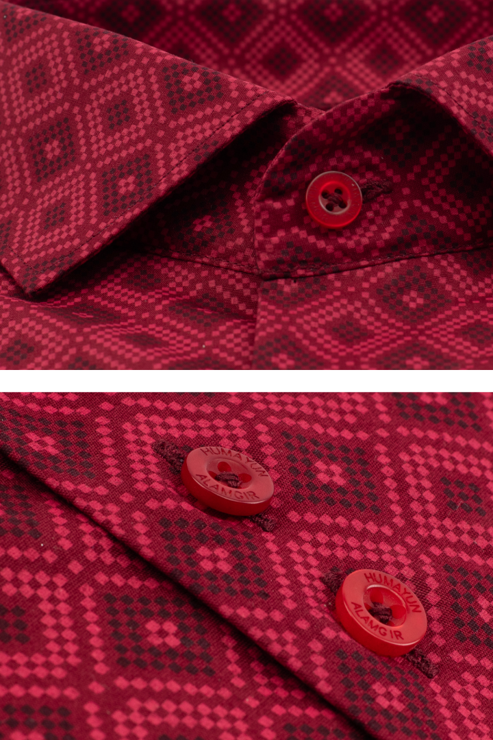 - High-quality maroon printed shirt with full sleeves and normal collar.