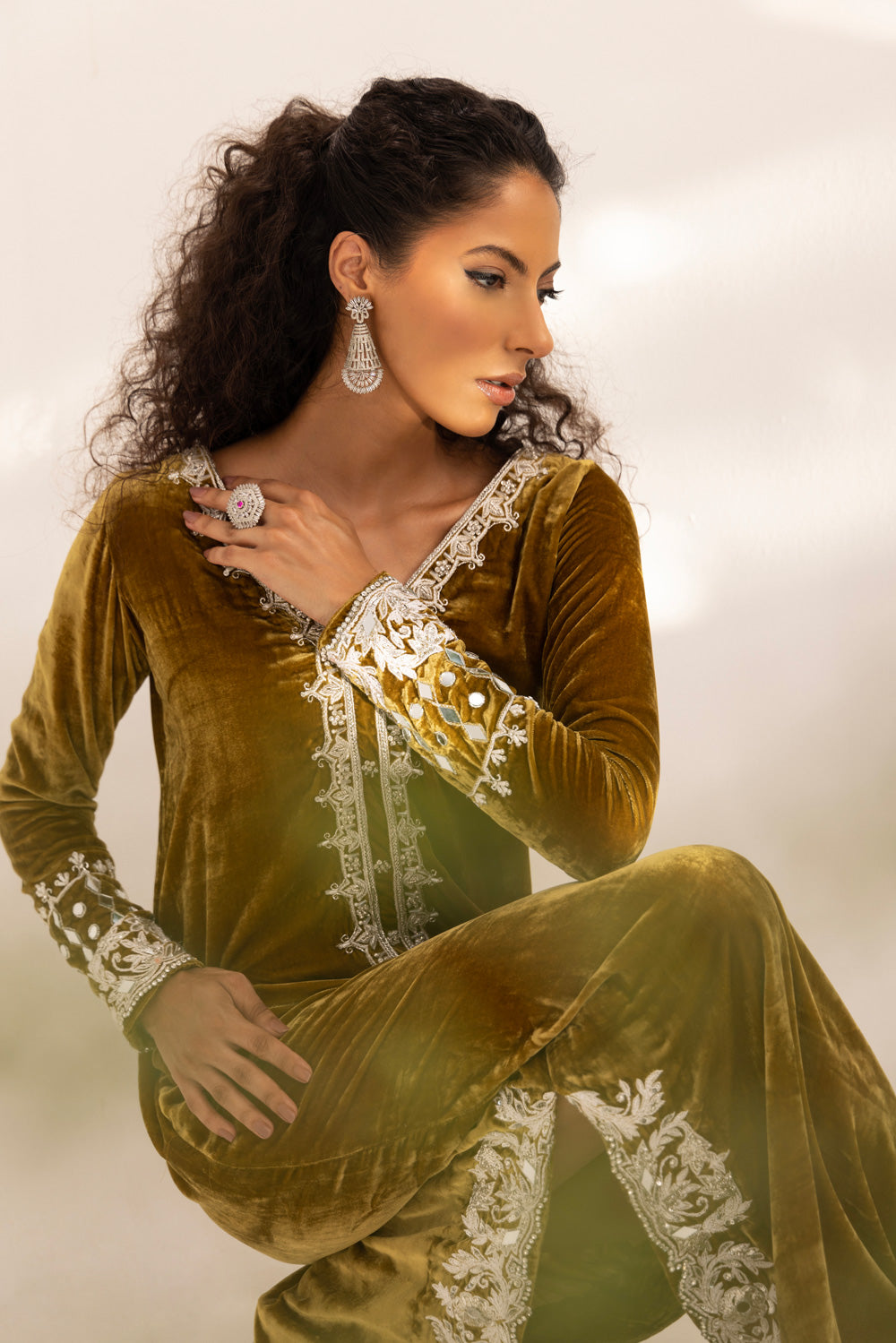 At HUMAYUN ALAMGIR we take great care to showcase our products in the most true-to-life colors possible. Our team invests significant effort in capturing the essence of each item. However, just like two people might see a sunset differently, the colors you see on your screen can vary due to individual device settings. Please understand that while we do our best to be accurate, subtle color differences may arise from screen to screen. - Final Sale Policy: