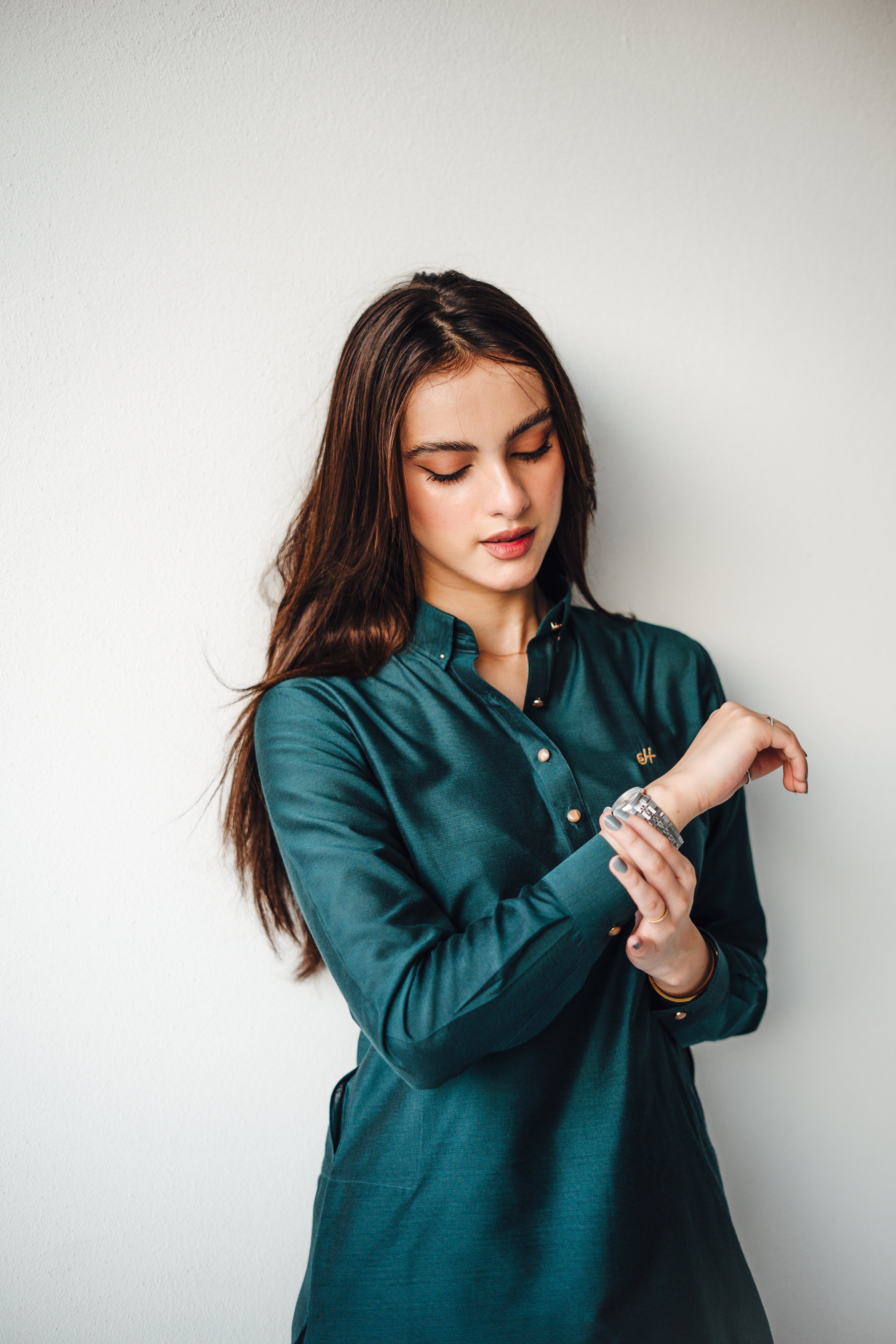 At HUMAYUN ALAMGIR we take great care to showcase our products in the most true-to-life colors possible. Our team invests significant effort in capturing the essence of each item. However, just like two people might see a sunset differently, the colors you see on your screen can vary due to individual device settings. Please understand that while we do our best to be accurate, subtle color differences may arise from screen to screen. - Final Sale Policy: