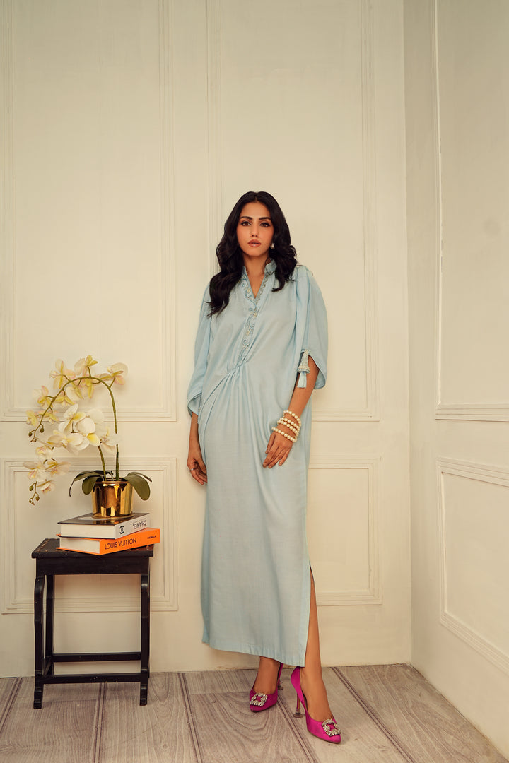 At HUMAYUN ALAMGIR we take great care to showcase our products in the most true-to-life colors possible. Our team invests significant effort in capturing the essence of each item. However, just like two people might see a sunset differently, the colors you see on your screen can vary due to individual device settings. Please understand that while we do our best to be accurate, subtle color differences may arise from screen to screen. - Final Sale Policy: