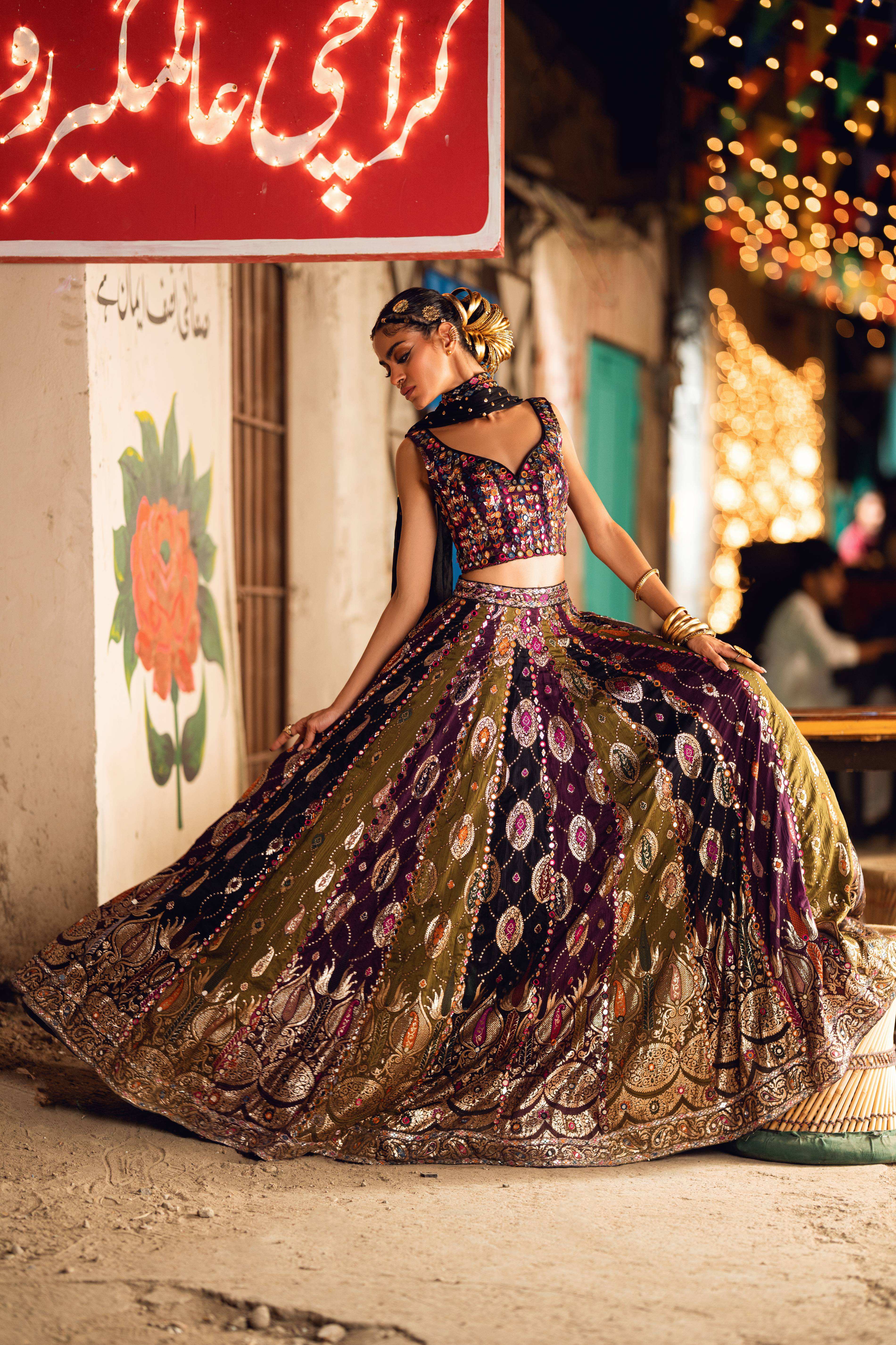 Fabric Description: CHIFFON BANARSI SHARARA , CHIFFON CHOLI WITH SILK , CHIFFON DUPATTA