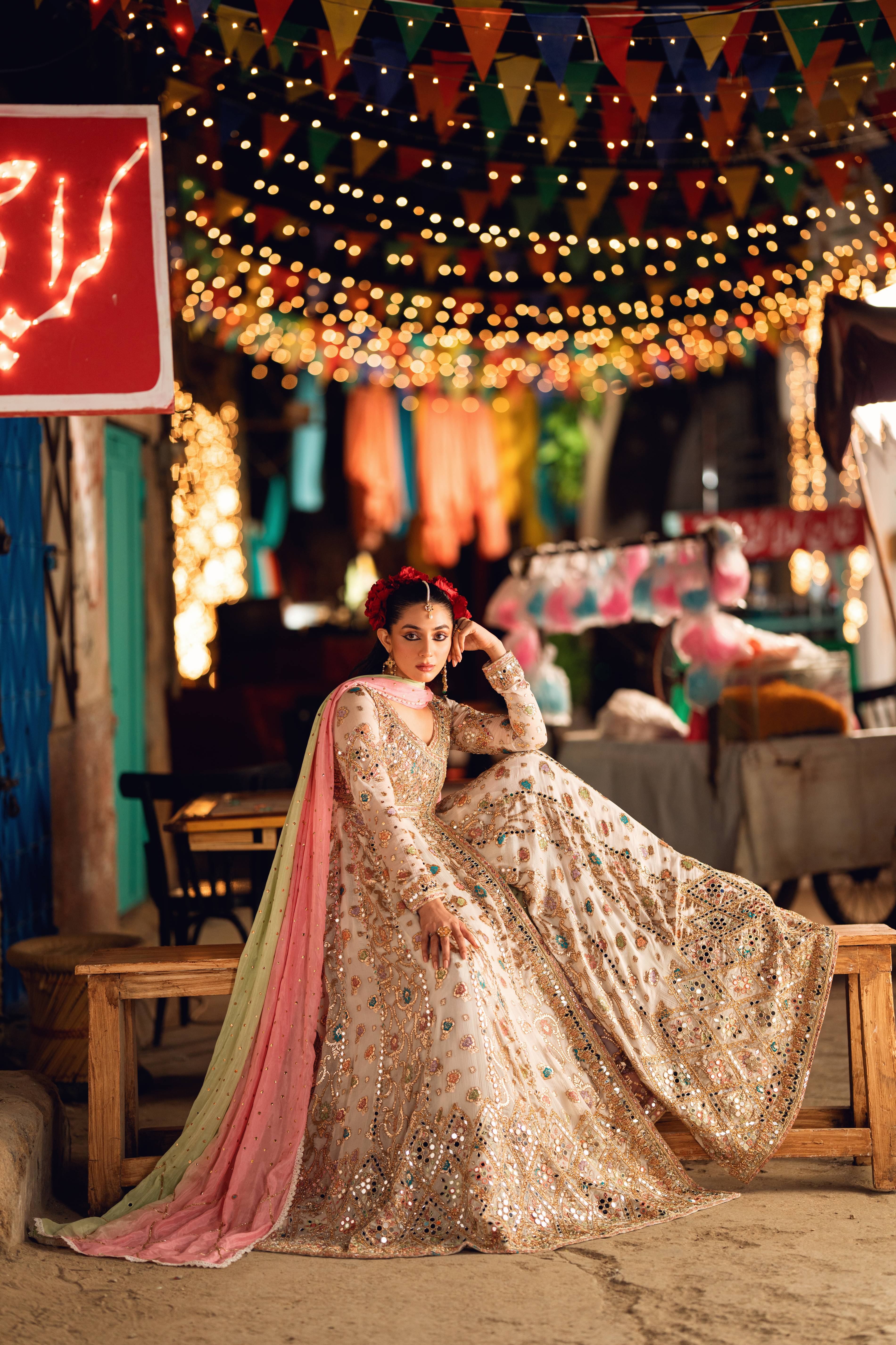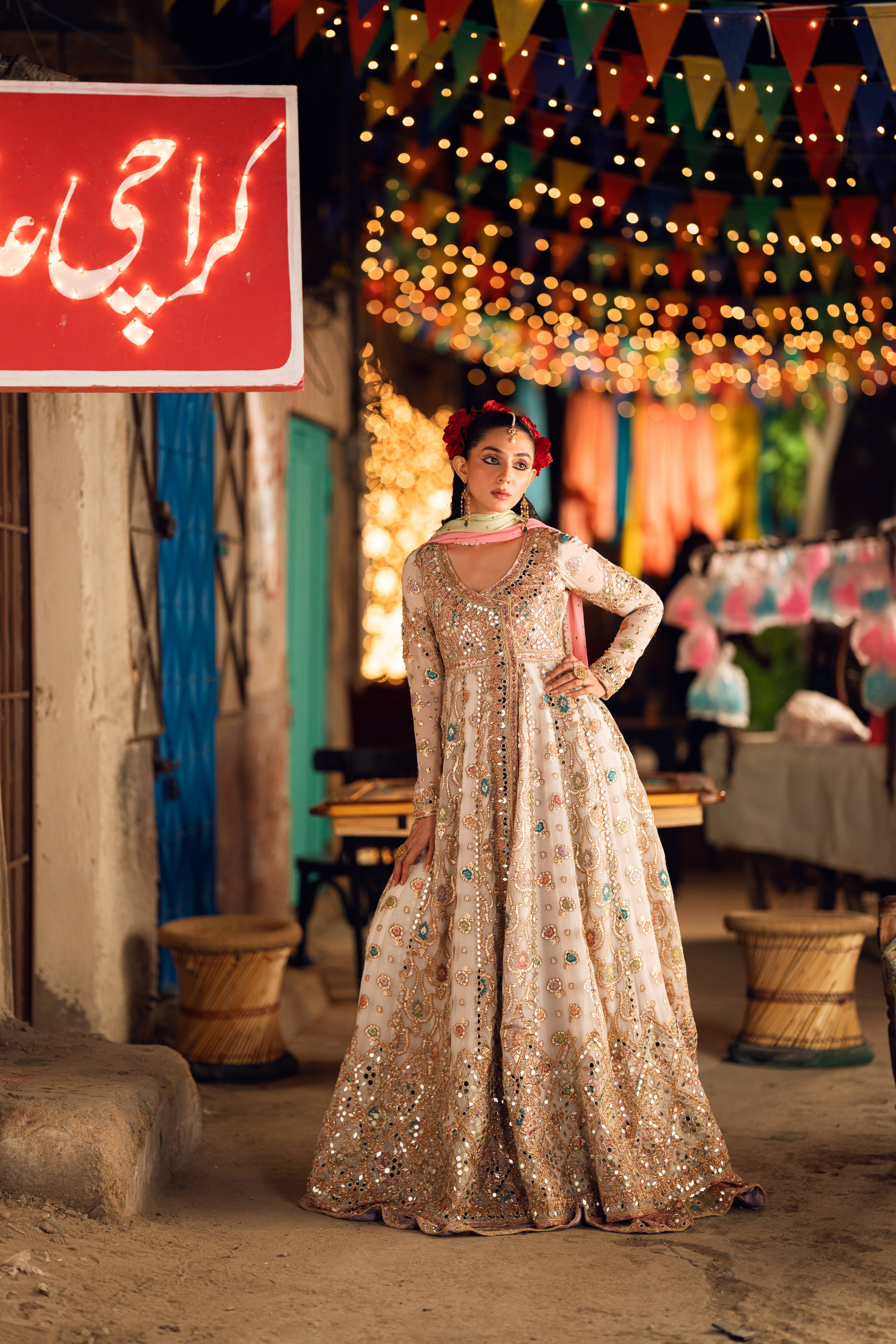 Embroidery Details: Salma Dabka, Thread Work, Mirror Work