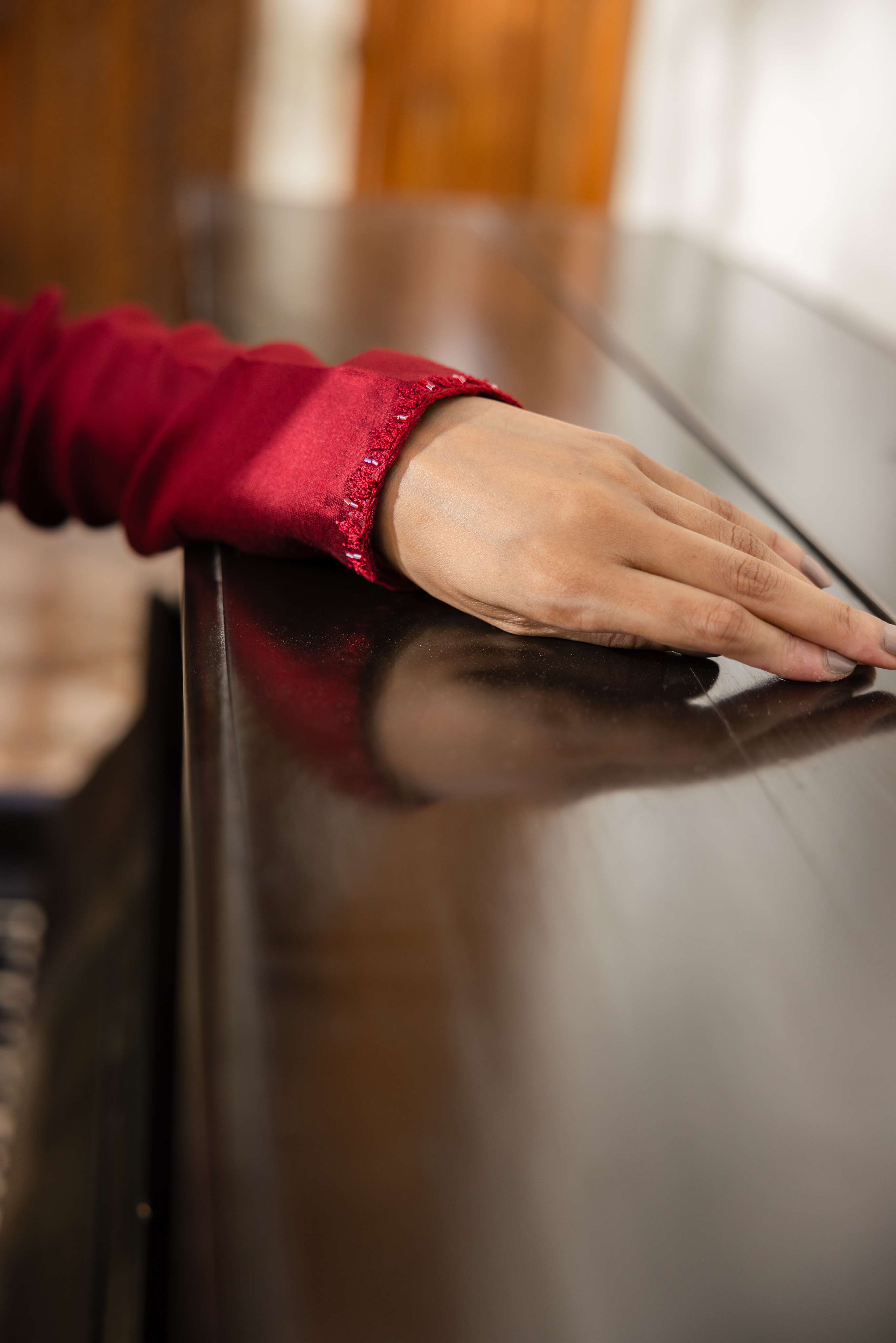 At HUMAYUN ALAMGIR we take great care to showcase our products in the most true-to-life colors possible. Our team invests significant effort in capturing the essence of each item. However, just like two people might see a sunset differently, the colors you see on your screen can vary due to individual device settings. Please understand that while we do our best to be accurate, subtle color differences may arise from screen to screen. - Final Sale Policy:
