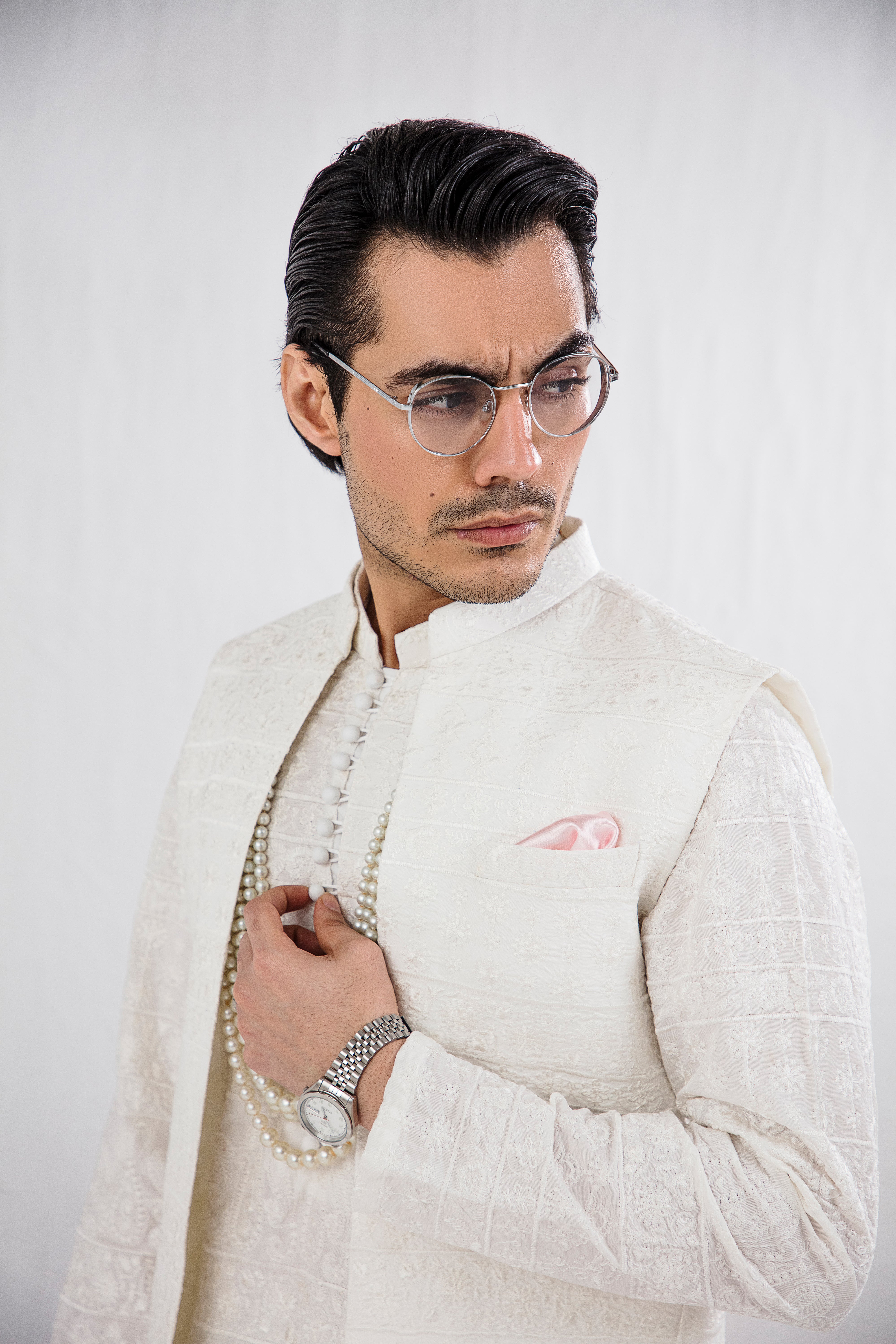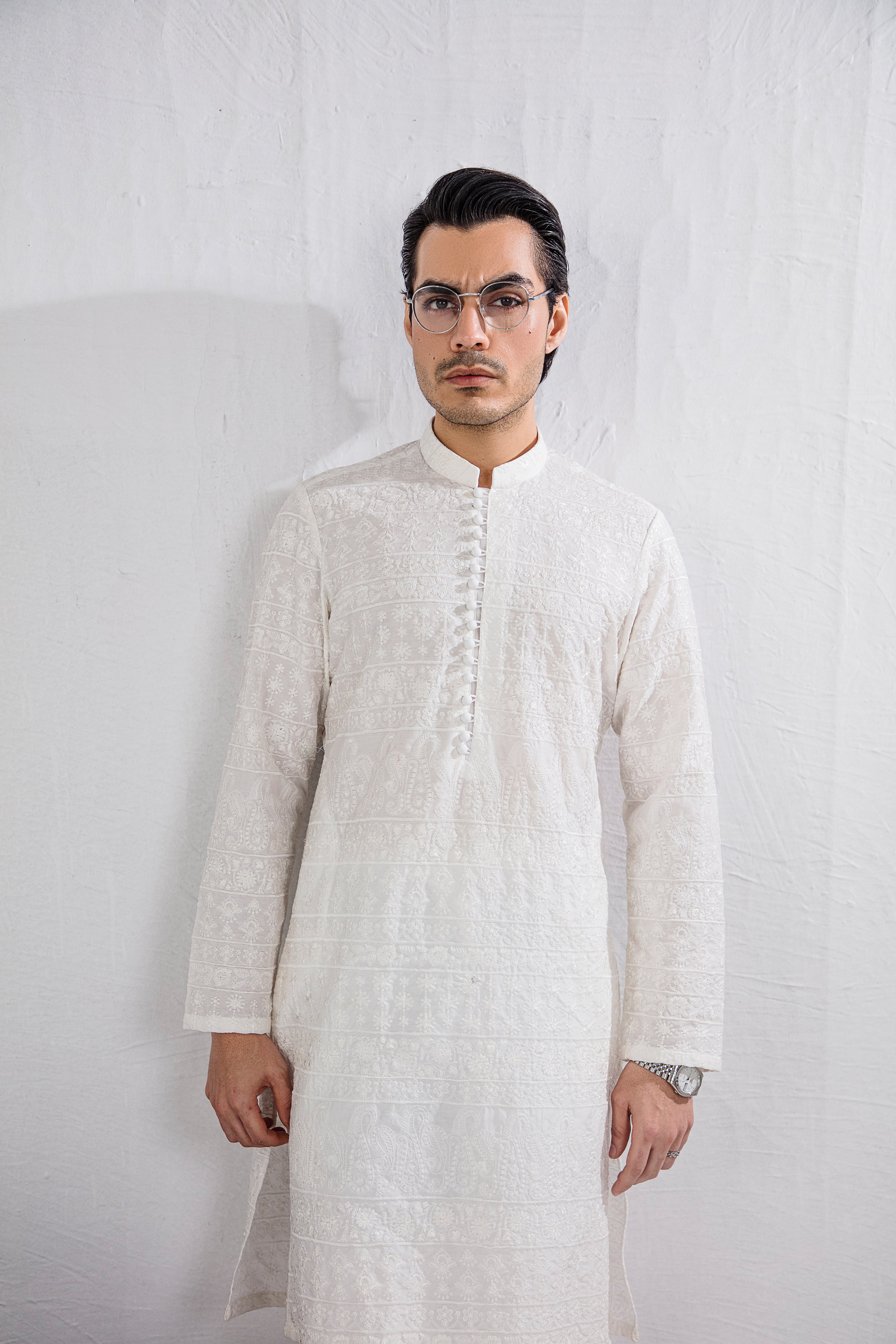 Bold, regal, and effortlessly refined — the White Deewan Kurta Pajama is crafted for the modern gentleman